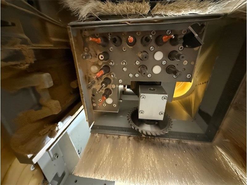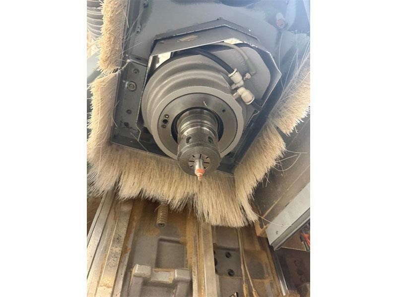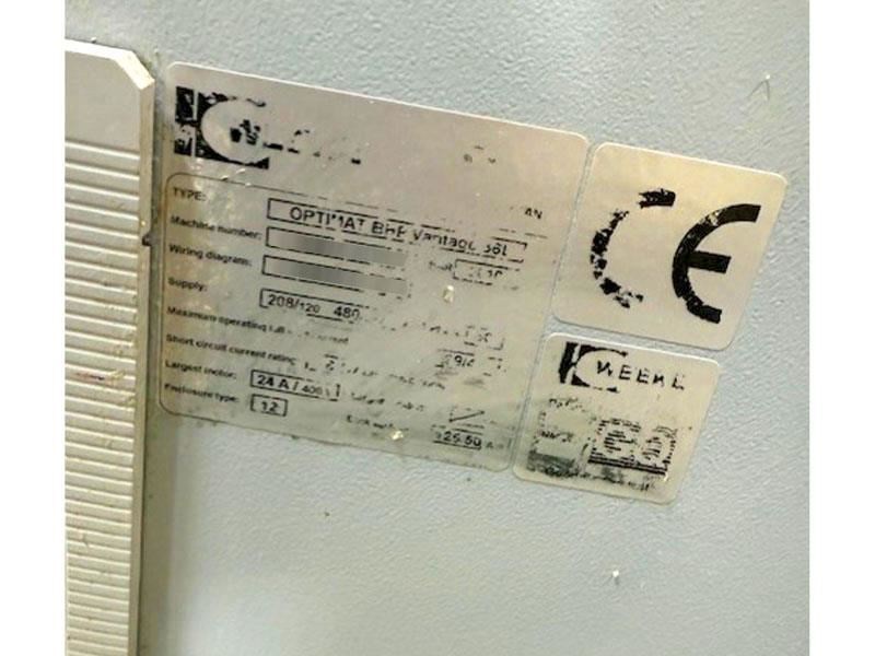 WEEKE VANTAGE 36L (W/BORING/ATC/"C" AXIS): -- Specifications:5' x 12' Bridge style gantry machine; working area cap. "X" Axis is 3,700 mm (145.7"), "Y" axis is 1,550 mm (61"); "Z" axis stroke of 185 mm (7.3"); max. material thickness is 3.9" (100 mm).The head travels on THK linear motion guides on all axes; positioning speed in "X" & "Y" axis is 345 FPM (105 MPM); "Z" axis is 66 FPM (20 MPM). -- Work Table: User-Friendly MATRIX grooved Phenolic vacuum table. The working field can be accessed with all processing units without restriction.(16) pneumatically lowerable workpiece stops, including electrical surveillance of lower cylinder position. -- Boring Unit:With 3.6 HP (2.7 kW) Motor, programmable variable speed from 1,500 - 7,500 RPM; (10) independent vertical spindles with (6) in "X" axis & (4) in "Y" axis.(1) NC controlled 0° - 90° "X/Y" grooving Saw with max. 125 mm dia blade; -- Machining:Equipped with: (1) 12 HP (9 kW) High speed constant duty, variable speed electro spindle Router, HSK F 63 adaptor.NC controlled "C" axis for 360° horizontal processing, programmable from 1,250 - 24,000 RPM, RH or LH rotation.(1) 14-Position ATC plate located on the machine head for "on the fly" ATC. -- Operator Interface:PC Front-End with: PC 85T + WoodWop 5.0 + Windows "XP"; 17" TFT color graphic monitor, keyboard for data entry; hand control pendant.CD R/W & floppy drives, EtherNET interface for LAN connection to office PC, RS-232 serial interface, and USB ports. BECKHOFF Programmable logic control for (3) axes; linear, circular & helical interpolation.The controller is contained in a separate free-standing, "air conditioned", dust-free control cabinet, which can be placed at either the LH or RH side of the machine. -- WoodWOP 5.0 can be programmed off-line with the same intuitive icon driven software that the operator has on the machine controller. -- Complete With:Safety mats (machine will stop machine if operator enters work area), separate control cabinet, Machine Documents & Manuals. -- Actual model is WEEKE VANTAGE 36L OPTIMAT BHP".Note: Vacuum Pump is Not IncludedNote: Schmalz Vacuum lift (pictured) is Not Included