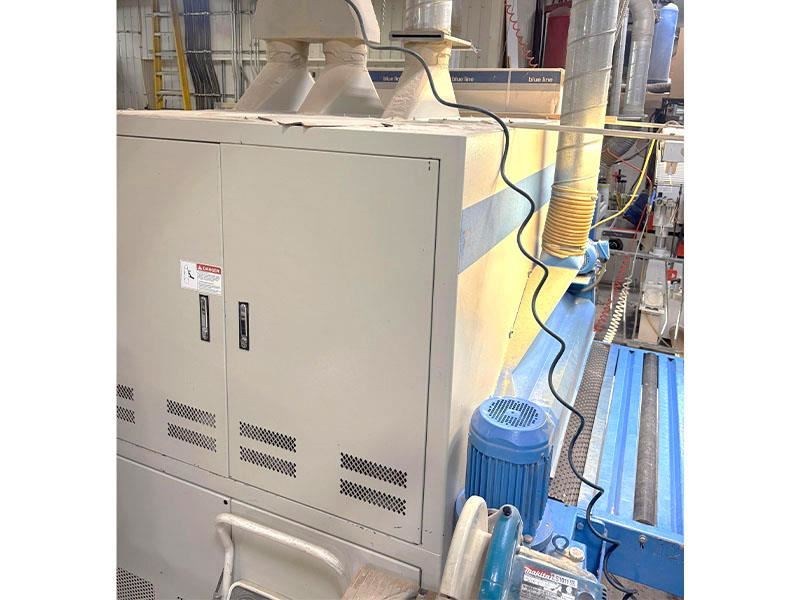 HOLYTEK - 252 PRC Series 200: (3) Heads Planer Sander3-Head, 1,300 mm (52") Width cap.; (1) Knife Planer head followed by: (1) Rubberized Drum, (1) Combination Drum/Platen.Specifications -- 5 mm - 125 mm (0.196" - 5") Motorized opening with: PLC Control; keypad entry; LED readout for part thickness. -- 1st Head. 150 mm (6") Dia. helical planer head; (6) rows of staggered (312) carbide inserts; each insert has: (4) Usable sides; 30 HP motor. -- 2nd Head. Rubberized Drum sanding head with: 215 mm (8-1/2") Dia. rubber covered contact roll; 25 HP motor. -- 3rd Combi Head. Drum & finishing platen; 20 HP motor. -- Sanding belt: 1,330 mm x 2150 mm (52 3/8" x 84 5/8"). -- TRU-TRAK Solid-state belt tracking. -- 3 HP Variable feed drive from: 15 - 50 FPM; GOODYEAR endless belt conveyor with automatic tracking. -- Powered lowering & raising of bed table on: (4) Columns via a 1/2 HP motor; handwheel for fine adjustment of thickness control.Complete with: -- Infeed over thickness bar; emergency stops at infeed & outfeed; air-operated disc brakes on sanding heads; electrical interlocks on main access doors; TELEMECHANIQUE electrical controls with overload protection; motor load meters.Note: Scissor Lift not included.