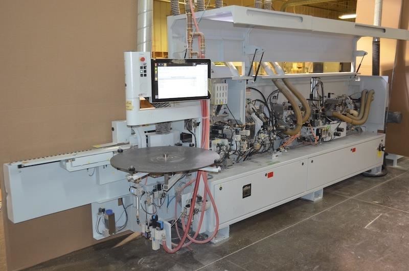 HOMAG - KDF-440C: Edgebander (Premilling & Corner Rounding w/HIGHFLEX Automated package -- Edge & Workpiece Capacity0.4 - 8 mm (0.016 - 5/16") Edge; 8 - 60 mm (5/16 - 2-3/8") panel thickness; 160 mm (6-3/8") min. panel length; 70 mm (2-3/4") min. panel width.Equipped with: -- Premilling Station: (2) Motors @ 2.25 kW (3.0 HP); 12.000 RPM; LH & RH rotation w/pneumatic jump control for chip-free & clean panel edges. Equipped with: Diamond cutterheads. -- Infeed Fence with: Servo motor positioning. -- Infrared Radiant Quartz Heating Unit between glue roller & pressure section. -- Automatic Edge Magazine for: Strip & coil stock; strips 0.4 mm - 8 mm (0.016 - 5/16"); coils up to 3 mm PVC; "HD" guillotine. -- "Quick Change" Glue Tank for: Maintenance & glue color change. -- Air Tech hot Air System. -- Pressure Section. 1st Roller driven plus: (3) Idle rollers, timed pneumatic pressure controlled; Servo motor positioning for programmable edge thickness changeover. -- Feed Speed: Variable 8 - 14 MPM (26 - 46 FPM); 11 MPM (36 FPM) when using contour trimming. -- HOMAG "Power Touch Control. Memory: 256 MB Ram; 1 GB Flash Card Drive; Operator control panel with: 22" Color HD widescreen; soft keypad; internal modem for remote diagnostic link.Workstations -- End Trimming: -- (2) Motor @ 0.35 kW (1/2 HP) - 12,000 RPM; automatic chamfer from control panel: 0°- 15°. -- Flush/Bevel Fine/Radius Trimming UnitTop/bottom (2) motors; 0.55 kW (3/4 HP) - 12,000 RPM; auto tilt positioning: 0° - 25° with combination: Flush/radius/chamfer cutterheads; horizontal & vertical tracing wheels; equipped with: brushless multiaxis Servo motors for positioning of work unit & horizontal copy wheels for quick changeover.Includes: (3) Positioning options: Profile 1, profile 2, and flush trimming. -- Corner Rounding Unit(1) Motor: 0.35 kW (1/2 HP) - 12,000 RPM for: Leading & trailing edges vertical corner rounding of panels; either radius or chamfer cutters can be mounted; 3 mm max. edge thickness. -- Scraping, Multiprofile (PVC)Top/Bottom with: (2) Profiles; 1 mm & 2 mm or 3 mm instead of 2 mm; Servo control positioning of vertical & horizontal copy wheels. PVC scrape collection box. -- Scraping Glue UnitFlush top/bottom on panel surface with: Floating insert knives. -- Buffing UnitTop/bottom (2) motors: 0.10 kW (0.125 HP) - 2,800 RPM. -- RIEPE Anti-adhesion. -- RIEPE Detergent.Complete with:Motorized, programmable holddown pressure beam; padded sound enclosure; used tooling; Original Factory machine documentation. -- Actual Model: HOMAG - OPTIMAT KDF 440C (corner rounding). NOTE: Available early Dec/2025; possibly earlier.
